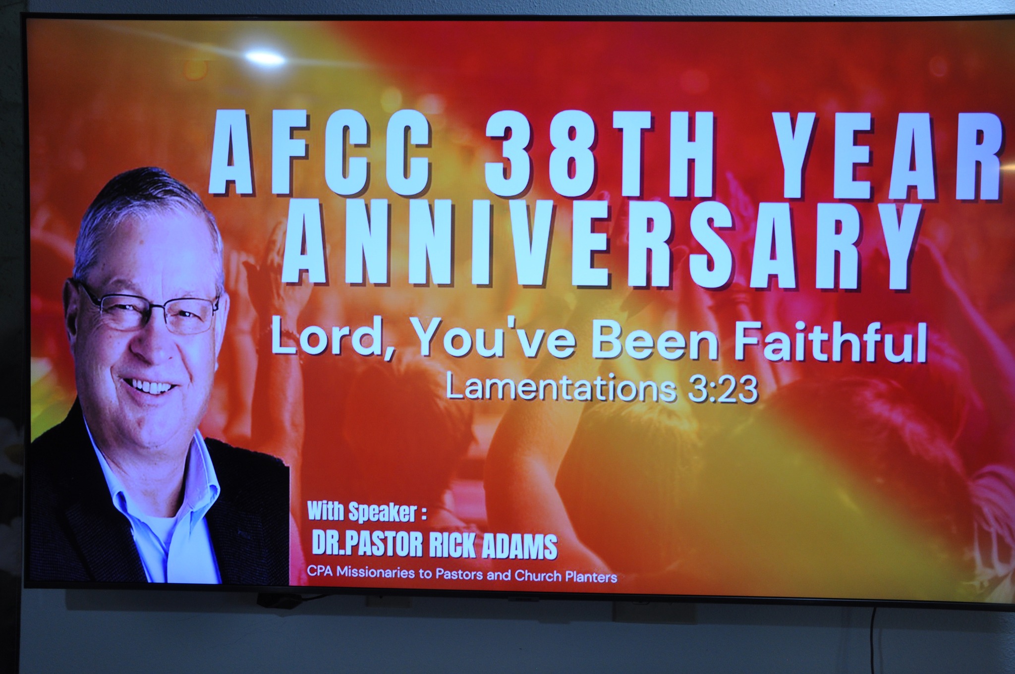 1. Worship Team "Warm Up" Rehearsal------- 8:30-9:15am 2. AM Sunday School and Worship Service----------------------9:30-12:00am 3. Sunday School classes from High School to Pre- Schoolers Group -------- 9:30-10:15am 4. Fellowship potluck Lunch is served following the AM Worship Service...5. Soul Winners Program -------Schedule: TBA Women/Men Training Lesson: How to share the Gospel6. Mother's Day Celebration (May 10, 2026) Fellowship poluck Lunch is served following the Worship Service...7. Father's Day Celebration (June 21, 2026) Fellowship potluck Lunch is served following the Worship Service...8. Vacation Bible School (Date:TBA) TBA...9. AFCC 39th Church Anniversary (September 13, 2026) Fellowship potluck Lunch is served following the Worship Service...10. Pre-Thanksgiving Celebration (November 26, 2026) Fellowship potluck Lunch is served following the Worship Service...11. Christmas Celebration (December 20, 2026) Fellowship potluck Lunch is served following the Worship Service...12. New Year Celebration (December 27, 2026) Fellowship potluck Lunch is served following the AM Worship Service...